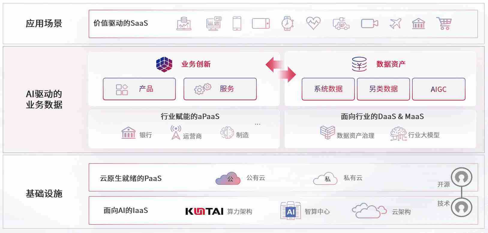 数字时代,,,,围绕企业数字化转型的关键要素,,,人生就是搏数码开创性的提出数云融合战略和技术体系框架,,,,着力在云原生、、、数字原生、、AI原生和信创产业上架构产品和服务能力,,为处在不同数字化转型阶段的快消零售、、、、汽车、、、、金融、、、、医疗、、政企、、、教育、、、运营商等行业客户提供泛在的敏捷IT能力和融合的数据驱动能力,,构建跨界融合创新的数字业务场景和新业务模式,,助力企业级客户建立面向未来的核心能力和竞争优势,,,,全面推动社会的数字化、、智能化转型升级。。。